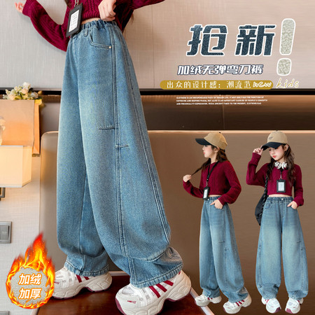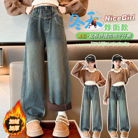 q*9下载“女童25冬加绒双层口袋牛仔阔腿裤8855”图片包