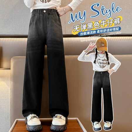 1*6下载“女童23秋黑色腰头喷白牛仔阔腿裤9523”图片包