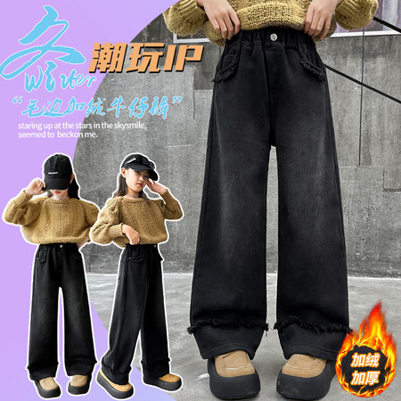 1*0下载“女童25冬加绒口袋毛边牛仔阔腿裤8856”图片包