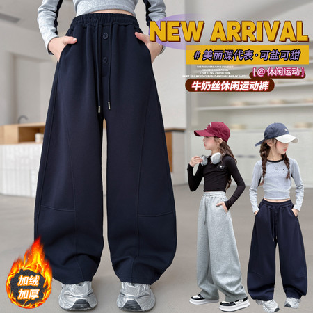 1*9收藏“女童冬款加绒加厚拼接钉扣休闲卫裤2621”