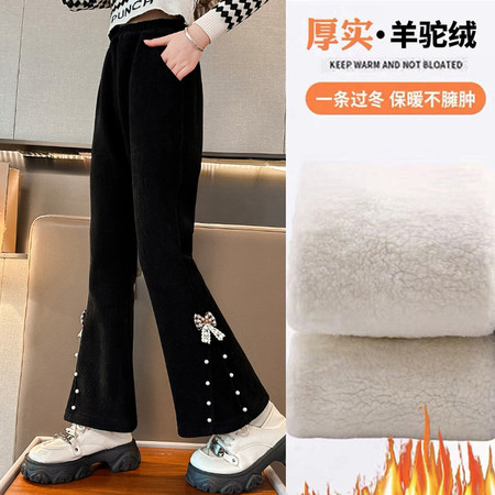 叮*镇收藏“女童25冬款羊驼绒拼接珠子喇叭裤8836”
